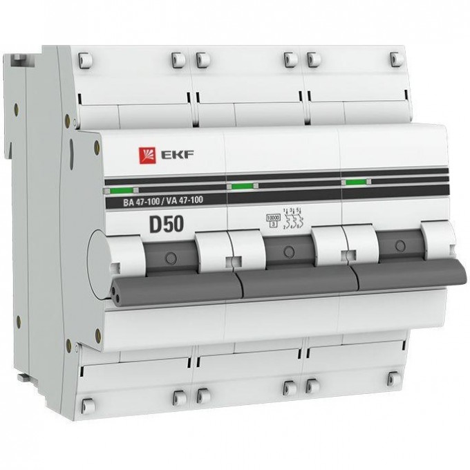 Выключатель автоматический модульный EKF PROXIMA 3P D 50А 10кА ВА 47-100 mcb47100-3-50D-pro